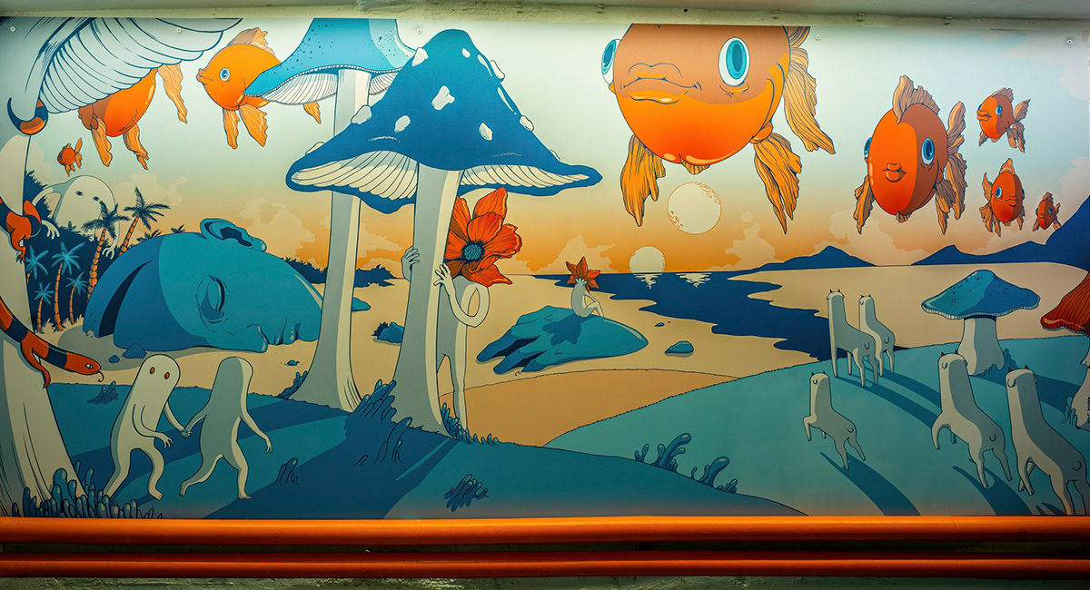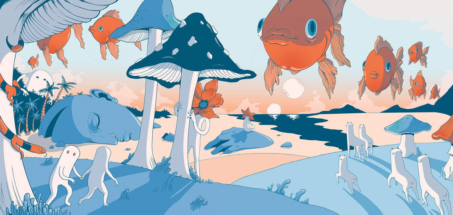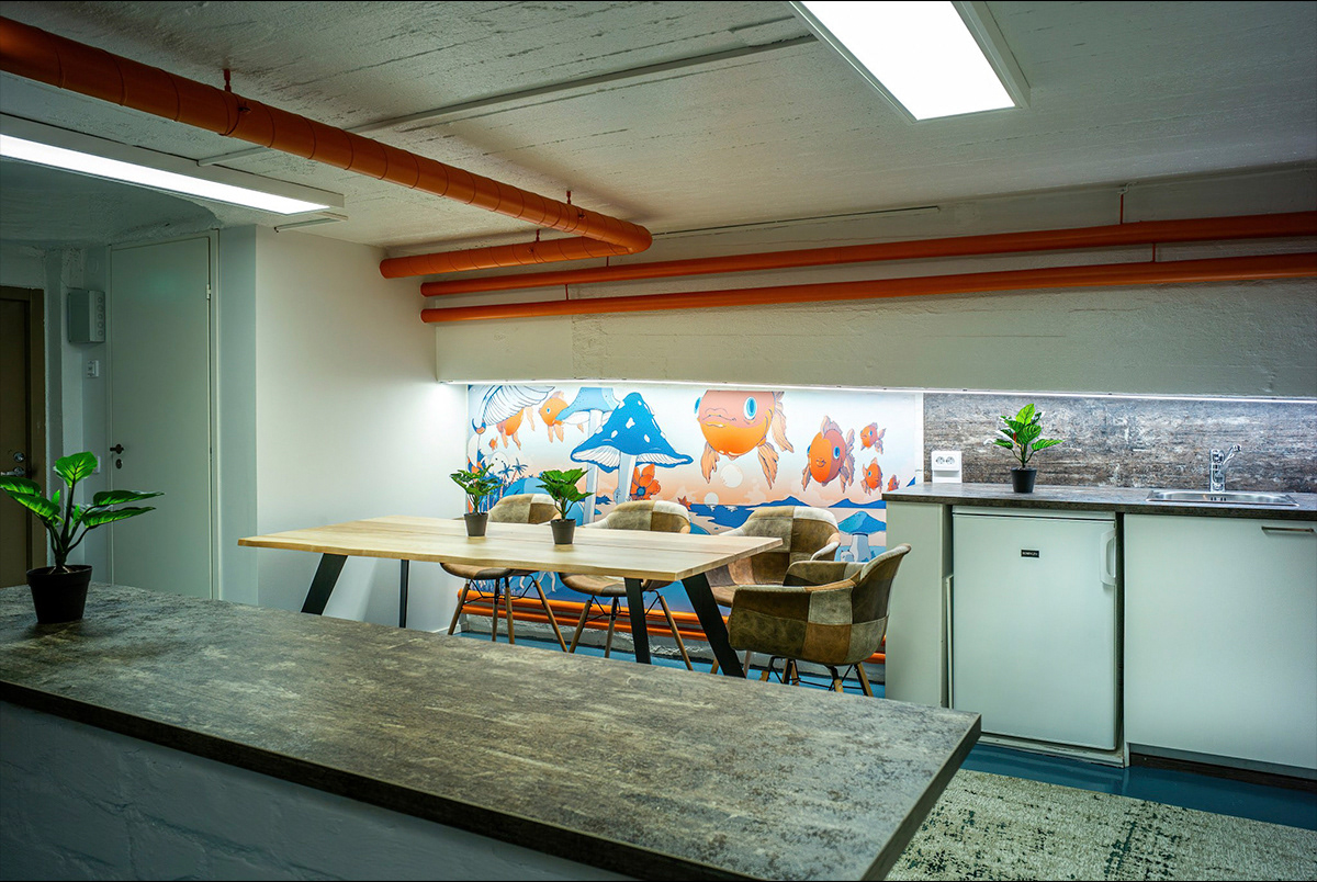 In the spring of 2020 the Foundation for student housing in Jyväskylä (KOAS) renovated one of their lounge and I got to design an illustration to one of it's 2,5m wide wall.